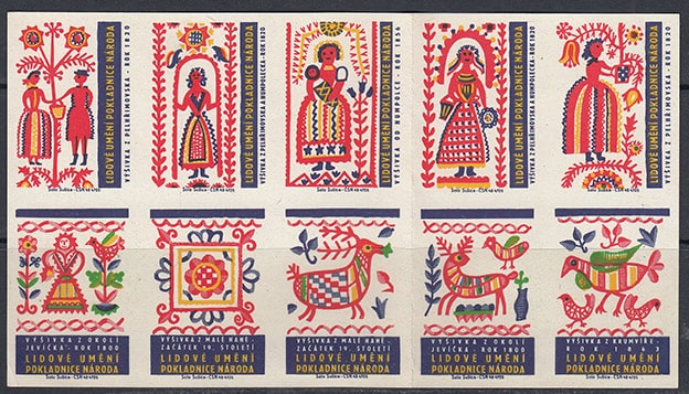 Набор иностранных спичечных этикеток, народное искусство, 10 штук