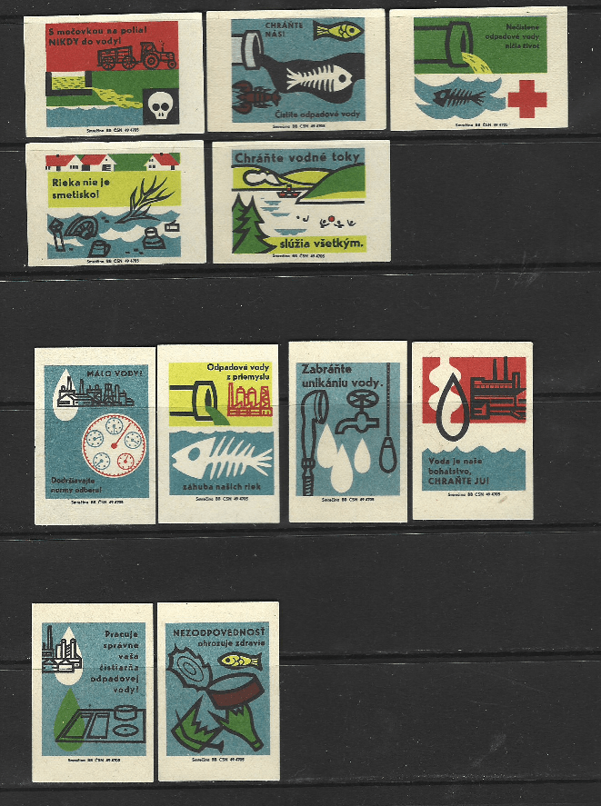 Набор иностранных спичечных этикеток. Не загрязняйте воду, 11 штук