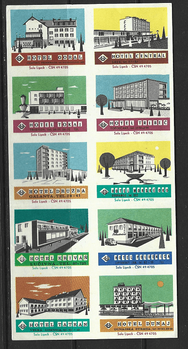 Набор иностранных спичечных этикеток. Отели, 10 штук