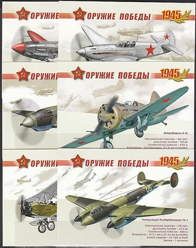Набор из 12 ПК. "Оружие Победы. Авиация", 12.04.2011 год. Спецгашение: город - герой Ленинград, 09.05.2011 год, СПб