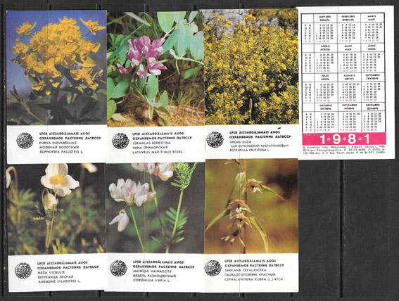 Набор календариков. Охраняемые растения ЛАТВССР. 1981-1984 гг. 14 шт.