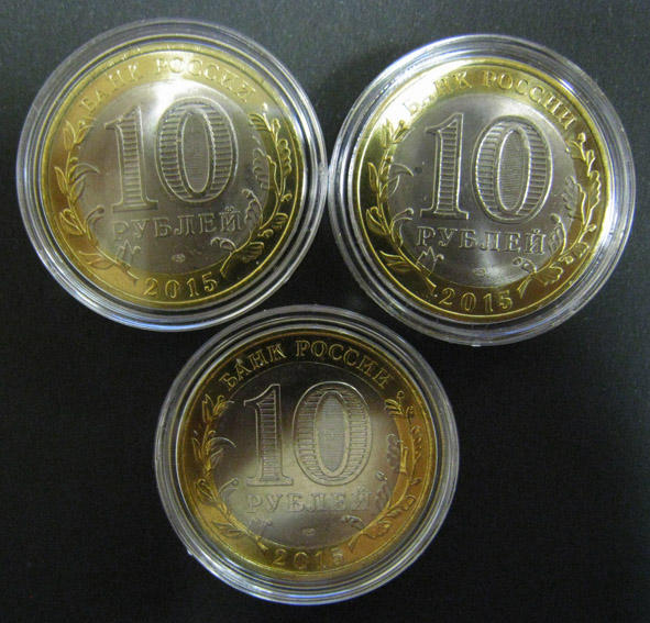 Набор монет. 10 рублей 2015 год. 70 лет Победы в Великой Отечественной войне. Цвет. 3 штуки