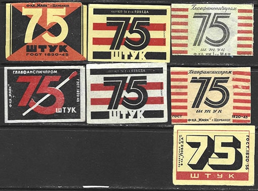 Набор одиничных спичечных этикеток. 75 штук. 7 шт. Разные Фабрики. 1940-1950-е гг.