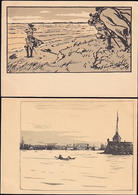 Набор открыток "Иллюстрации к поэме А.С. Пушкина. "Медный всадник" (16 шт.) Выпуск 1966 год