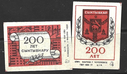 Набор спичечных этикеток. 200 лет Сыктывкару. 2 шт. 1980 год
