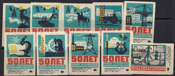 Набор спичечных этикеток. 50 лет Горно-Алтайской автономной области. 10 шт.