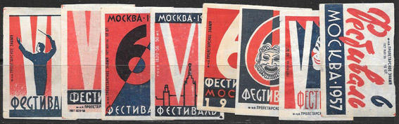 Набор спичечных этикеток. 6 фестиваль. Москва 1957 г. 8 шт.