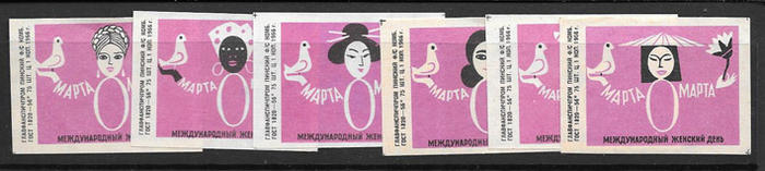 Набор спичечных этикеток. 8 марта. 1966 год. 6 штук