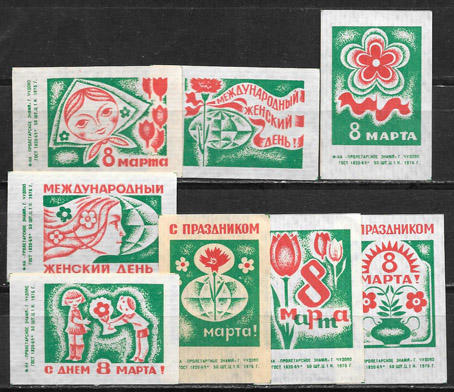 Набор спичечных этикеток. 8 марта. 1976 г. 8 шт.