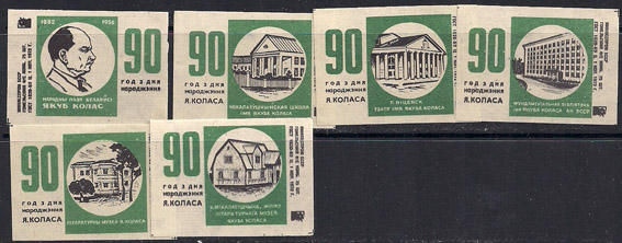 Набор спичечных этикеток. 90 лет со дня рождения Я. Коласа, 1972 г. 6 шт.