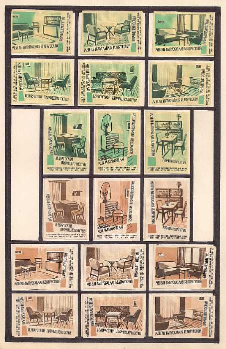 Набор спичечных этикеток. Белорусская мебель, 1964 год. 18 штук на листе