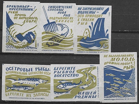 Набор спичечных этикеток. Берегите рыбное хозяйство! 1962 год. 6 шт.