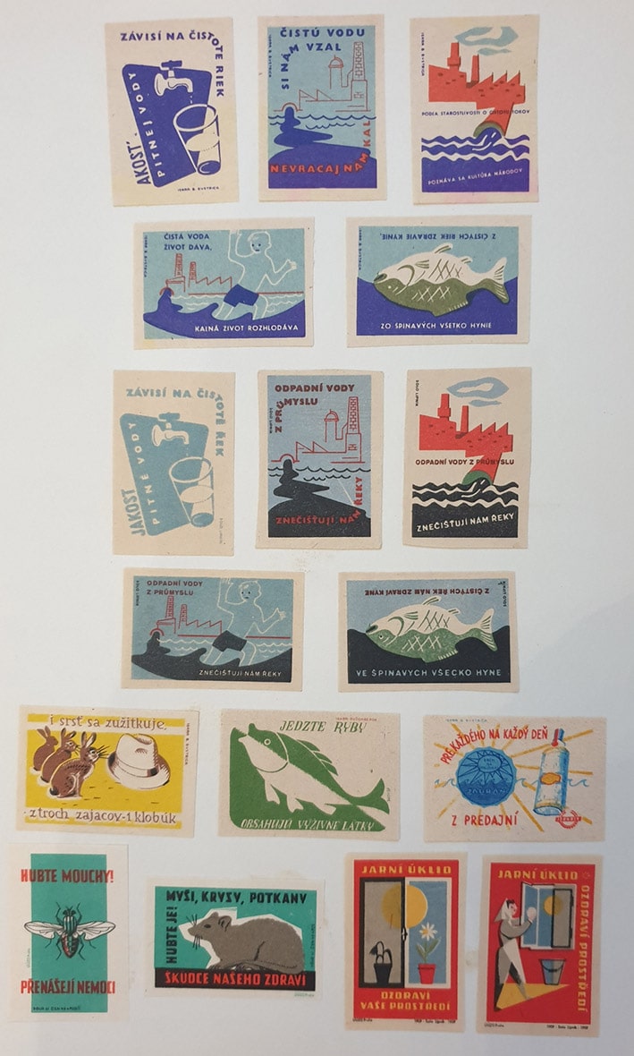 Набор спичечных этикеток. Чехословакия. Рыбный промысел. Паразиты. 17 штук на листе