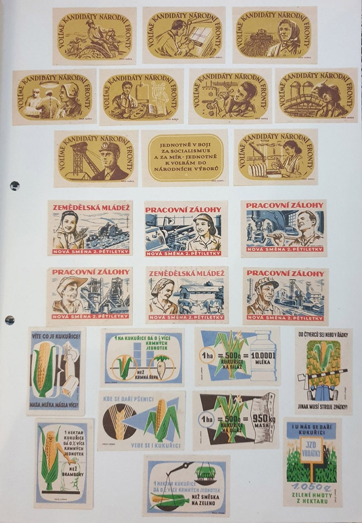Набор спичечных этикеток. Чехословакия, социализм, производство, сельское хозяйство, 25 штук на листе