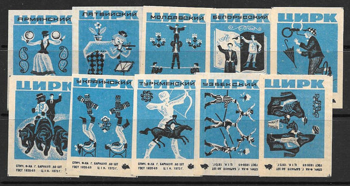 Набор спичечных этикеток. Цирк 1973 г. 10 шт.