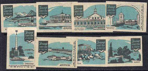 Набор спичечных этикеток. Днепр зовет Вас в гости. 1964 г. 8 шт.