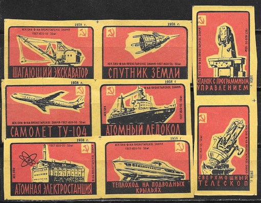 Набор спичечных этикеток. Достижения науки и техники. 1958 год