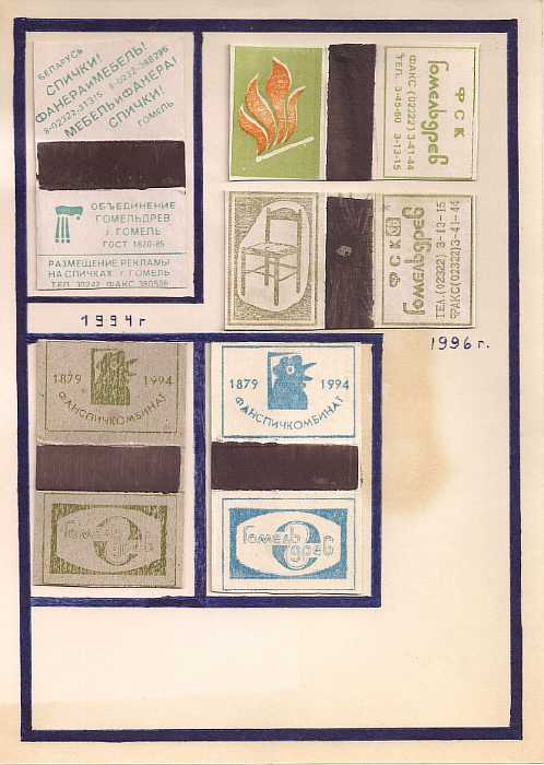 Набор спичечных этикеток. Гомельдревкомбинат 1966 и 1994 год. 4 штуки на листе