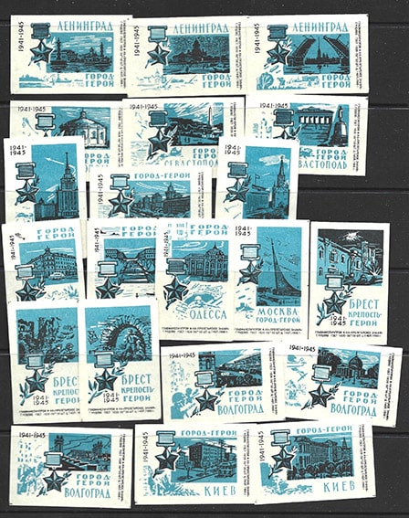 Набор спичечных этикеток. Города-герои. 1966 г. 21 шт.