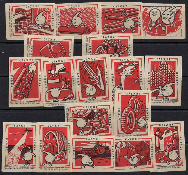 Набор спичечных этикеток. Химия служит народу. 1964 г. 18 шт.