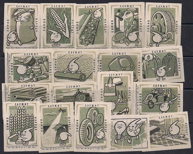 Набор спичечных этикеток. Химия служит народу. 1964 г. 18 шт.
