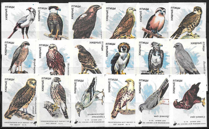 Набор спичечных этикеток. Хищные птицы. 18 шт.