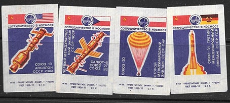 Набор спичечных этикеток. Интеркосмос. Сотрудничество в космосе. 1979 г. 4 шт