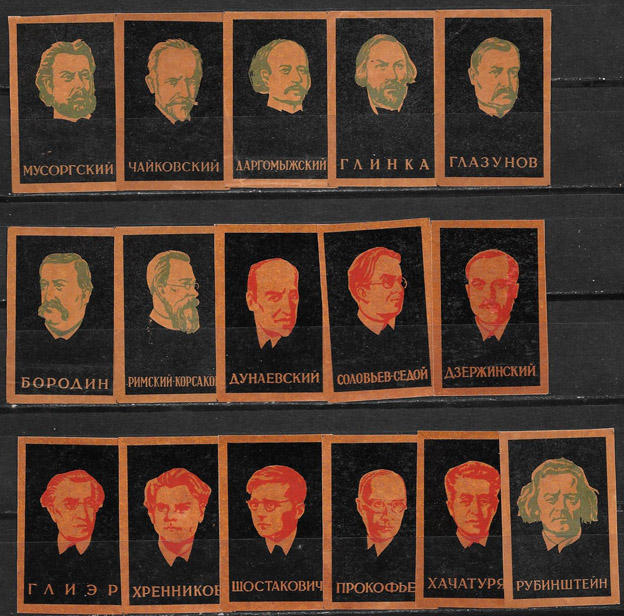 Набор спичечных этикеток. Композиторы. 16 шт 1960 год