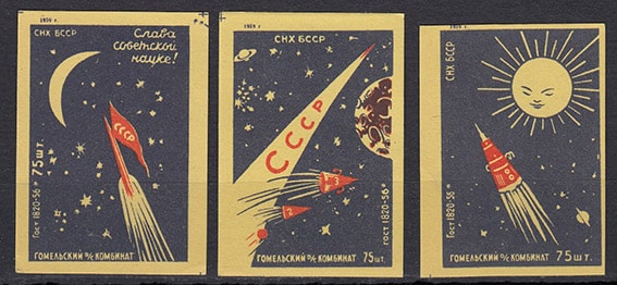 Набор спичечных этикеток. Космос, 1959 год, 3 штуки