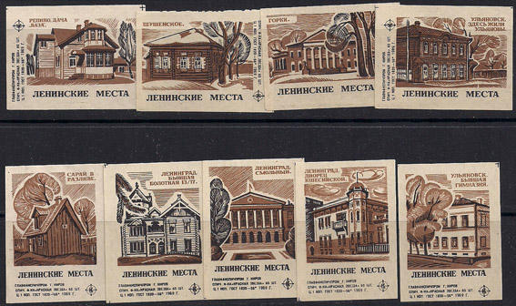 Набор спичечных этикеток. Ленинские места. 1969 г. 9 шт.