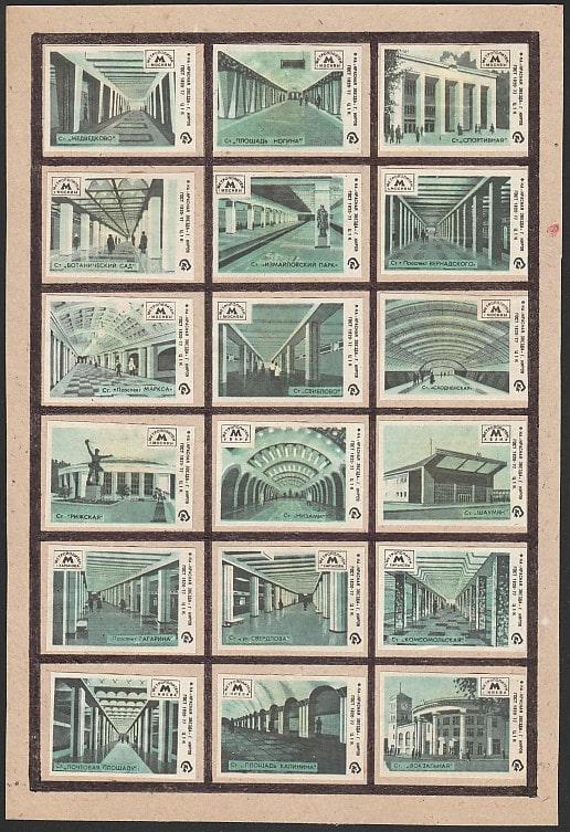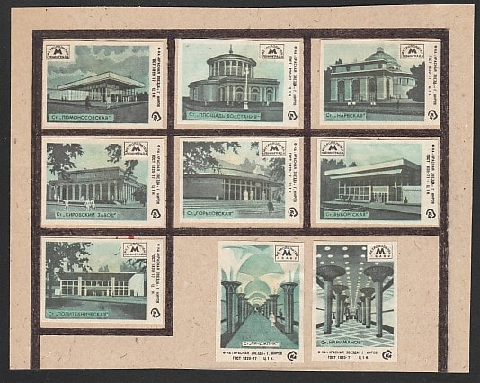 Набор спичечных этикеток. Метрополитены СССР, 1981 год, 27 штук. Город Киров, ф-ка "Красная Звезда". (наклеены на лист)