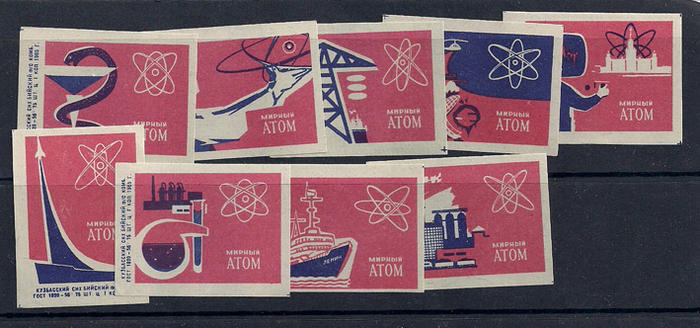 Набор спичечных этикеток. Мирный атом. 1965 г. 9 шт.