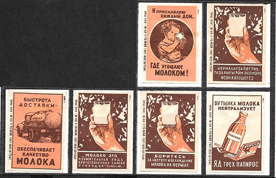 Набор спичечных этикеток. Молоко. 1959 год. 6 шт НАКЛЕЕНЫ НА ЛИСТ