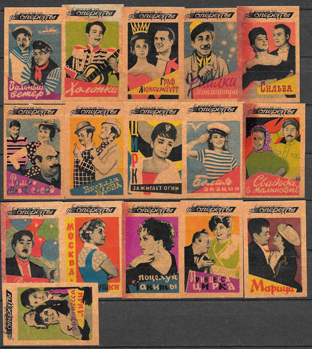 Набор спичечных этикеток. Московский театр оперетты. 16 шт. 1962 г.