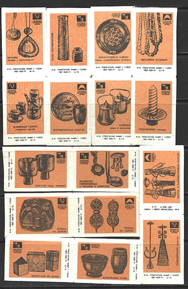 Набор спичечных этикеток. Народные промыслы Латвии, Литвы и Эстонии. 16 шт.