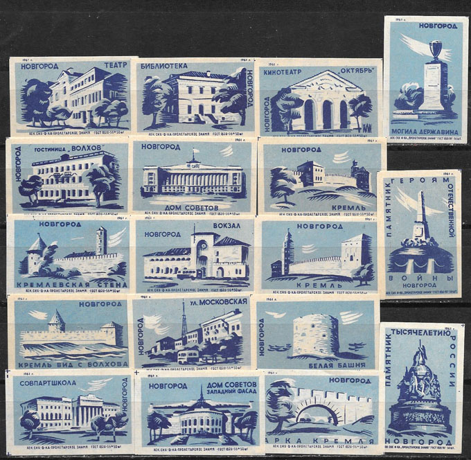 Набор спичечных этикеток. Новгород. 18 шт. 1961 год