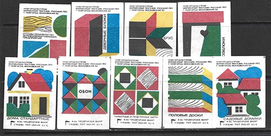 Набор спичечных этикеток. Новгородлеспром. Русский лес. Выпуск 1. 9 шт. 1989 год