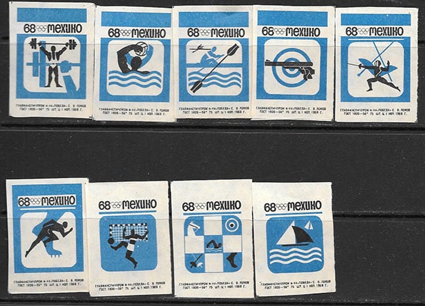 Набор спичечных этикеток. Олимпиада Мехико-68. 1968 г. 9 шт.