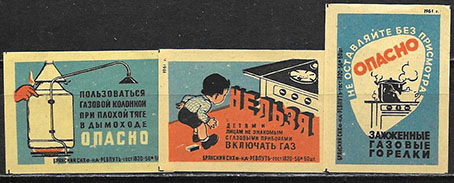 Набор спичечных этикеток. Опасно! Газ! 1961 год. 3 шт.