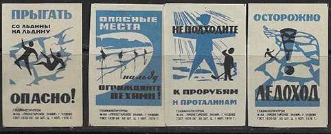 Набор спичечных этикеток. Осторожно на льду. 1970 год. 4 шт.