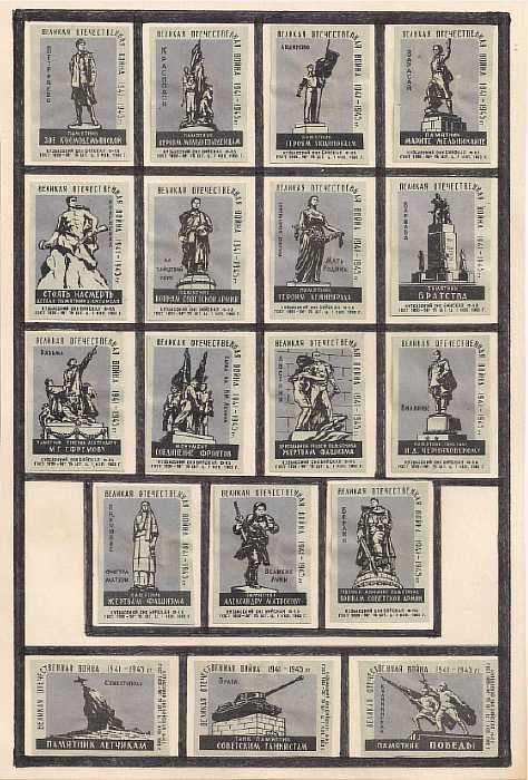 Набор спичечных этикеток. Памятники ВОв, 1963 год. 18 штук на листе