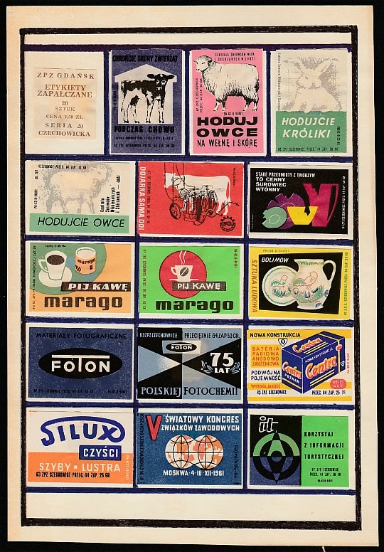 Набор спичечных этикеток. Польша, Чеховице. Домашние животные, реклама, 15 штук