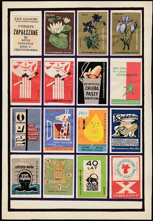 Набор спичечных этикеток. Польша, Ченстохова. Цветы, агитация, реклама, 15 штук (наклеены на лист 180/260 мм)