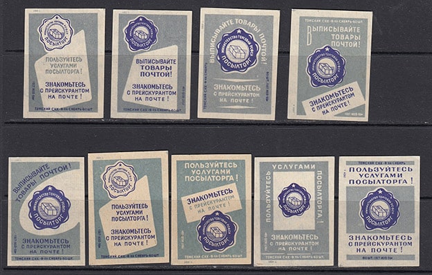Набор спичечных этикеток. Посылторг. 1959 год. Серые. 9 штук