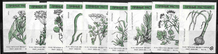 Набор спичечных этикеток. Пряные растения. 9 шт.