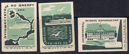 Набор спичечных этикеток. Путешествуйте по Днепру. 1963 г. 3 шт.