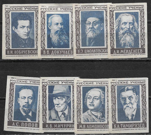 Набор спичечных этикеток. Русские ученые. 8 шт. 1961 год