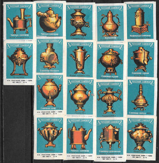 Набор спичечных этикеток. Русский самовар. 18 шт. 1979 год