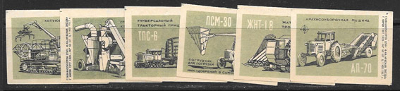 Набор спичечных этикеток. Сельскохозяйственный транспорт. 1967 г. 6 шт.