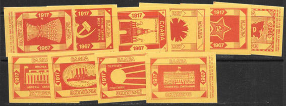 Набор спичечных этикеток. Слава Октябрю! 1967 г. 10 шт.